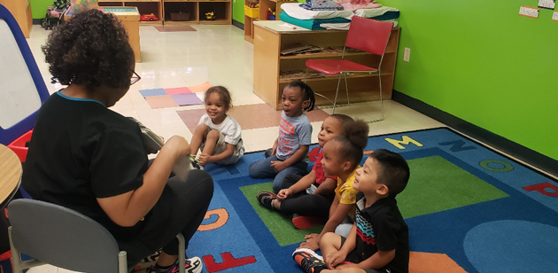 Our teachers plan everyday activities that encourage rich conversational talks during circle time, meal times, outdoor play and story and art time.